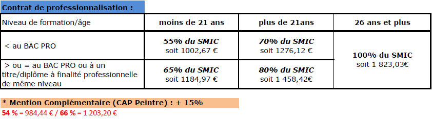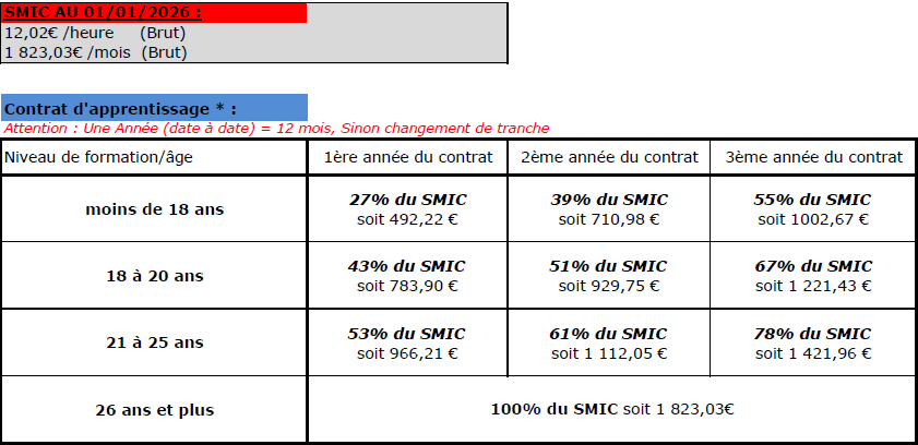 Le salarié perçoit une rémunération minimale spécifique prenant en compte son âge et de l’année de formation. Le salaire minimum perçu par le jeune correspond à un pourcentage du SMIC.